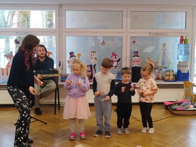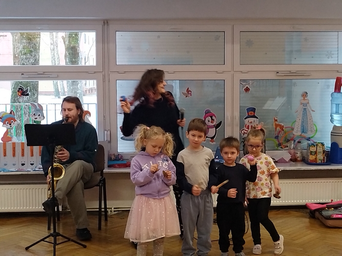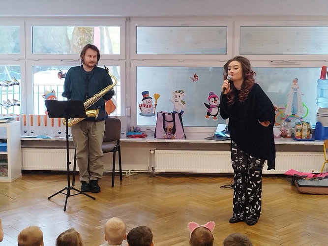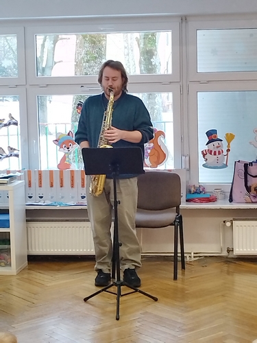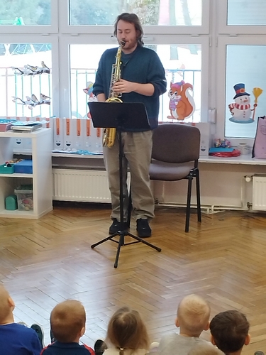 Audycja muzyczna z saksofonem.